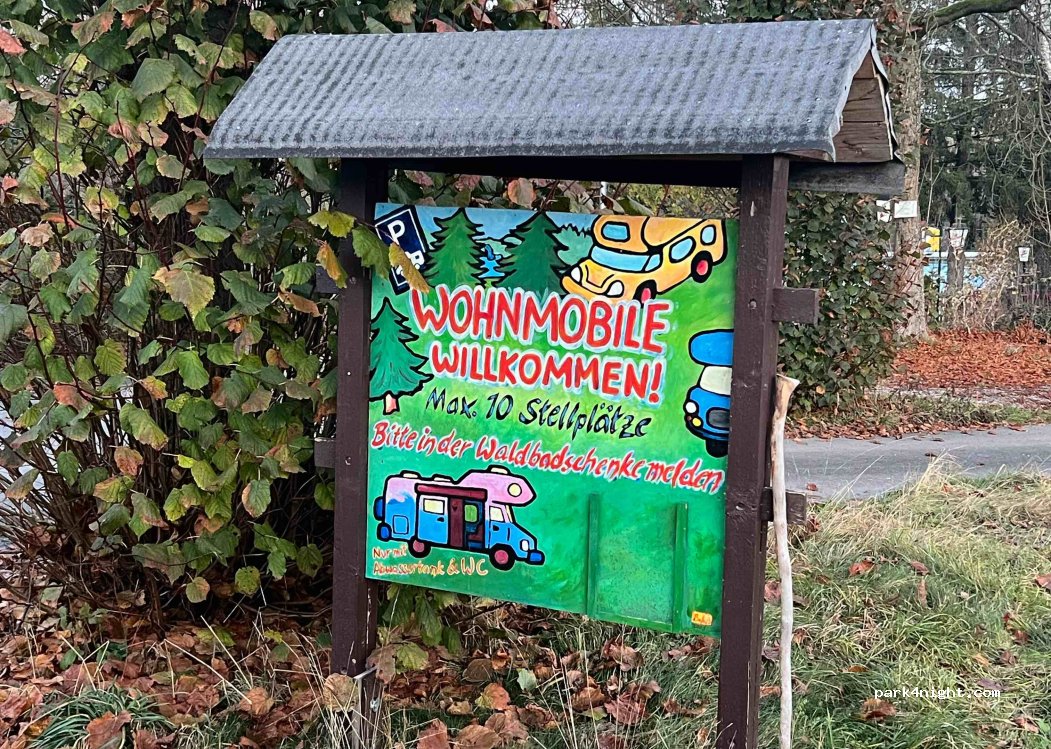 Wir haben eine ruhige Nacht hier verbracht und lecker in der angrenzenden Waldbadschänke gegessen. Anmeldung erfolgt auch beim gastfreundlichen Wirt. Es war sicher nicht der letzte Besuch. Übernachtung nur für Womos mit Bordtoiletten!