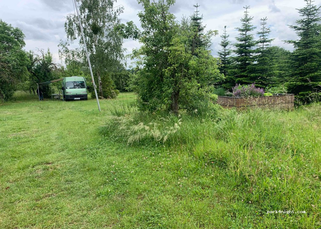 Eine sehr schöner Ort zum Übernachten, mit einer tollen freien Dusche zwischen Tannen, sogar mit Warmwasser für Warmduscher. Die Besitzerin ist eine sehr herzliche Person, lief alles ganz prima und unkompliziert! Zum See mit eigenem Steg der Familie sind es nur ein paar Minuten - schöner geht es kaum. Abends ein Bier auf der Bank zwischen Apfelbäumen und den Sternenhimmel beobachten, mehr brauchten wir nicht.
