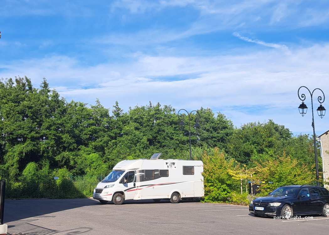 Parking at the station. Lots of places at night. Relatively calm. Well lighted. No parking ban for motorhomes. Some daytime trains line Étaples Arras. School bus stop nearby.