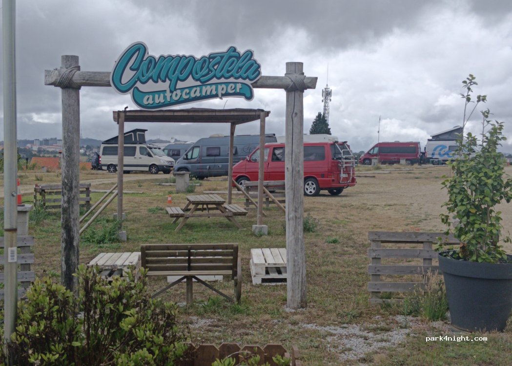 Wunderschöner ruhiger Stellplatz mit direkten Blick auf Santiago auf Compostela. Gute Busanbindung nach Santiago, ein Taxi kostet um die 8-9€. Sehr zu empfehlen!