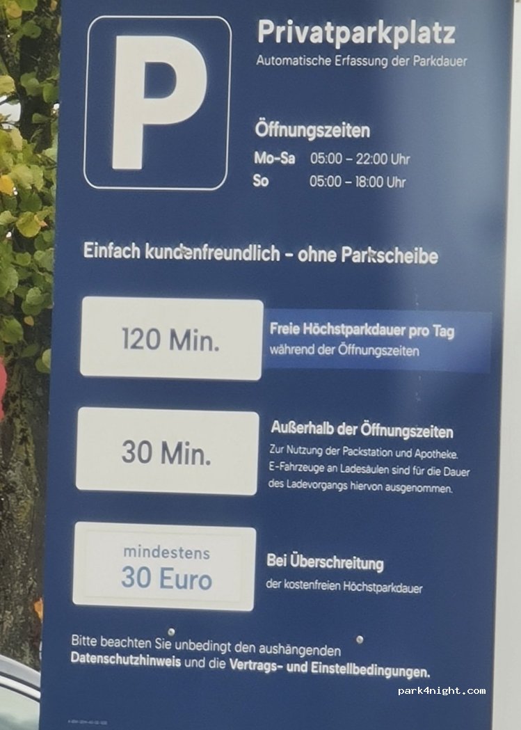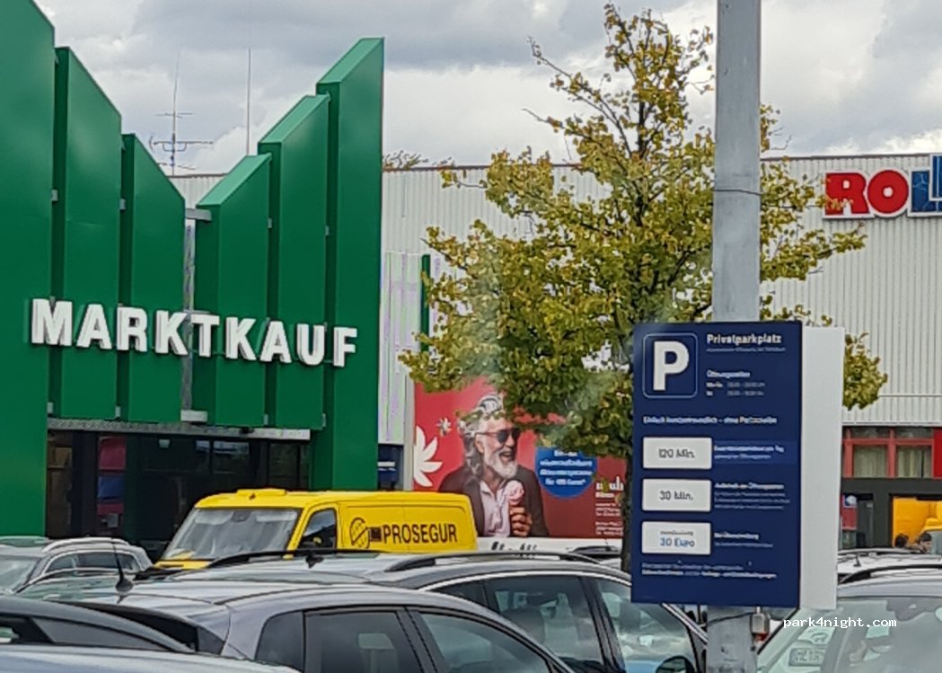 Ist seit vielen Monaten ein Marktkauf mit Privatparkplatz. Gebühren und Dauer siehe Fotos. Sicher auch nicht sehr ruhig. McDonald's in der Nähe.