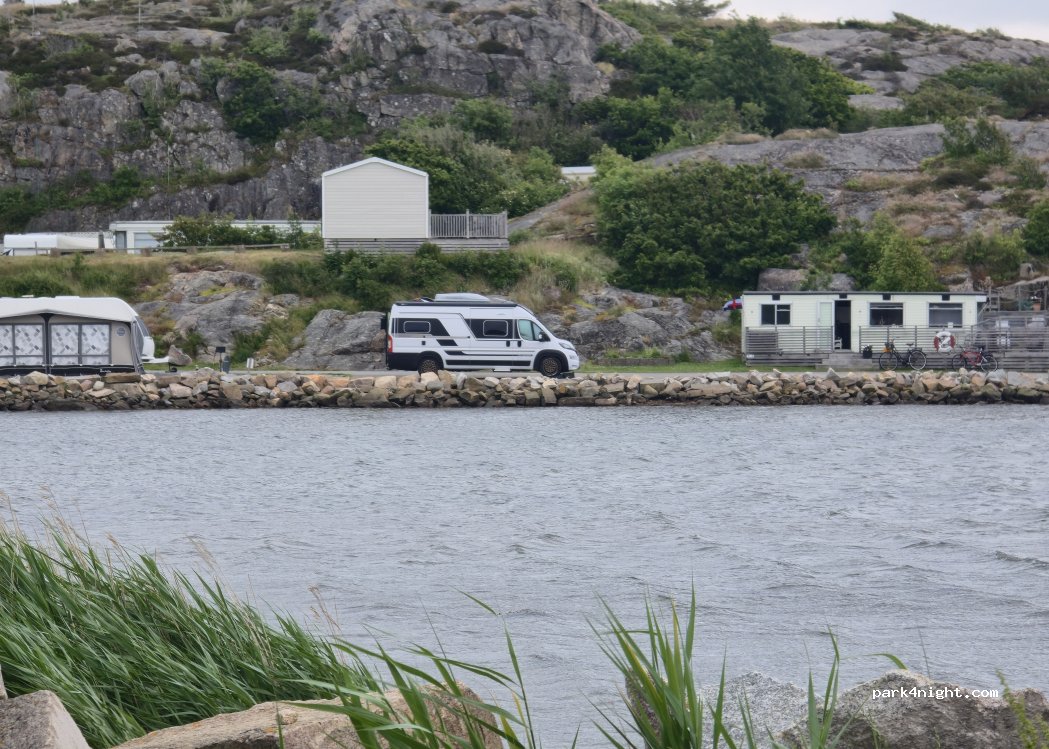 Mooie, gezellige camping direct aan het water gelegen in een kleine baai, omringd door prachtige rotswanden. Voor camperaars zijn er ook hele mooie plaatsen op asfalt of gras direct aan het water. De plaatsen zijn relatief smal, maar gespreid. 2,5 km van het centrum van Kungshamn en 4 km van Smögen. Bijzonderheid: drijvend zeewaterzwembad op zee behorend bij de camping. Campingwinkel bij de receptie met goed assortiment.
