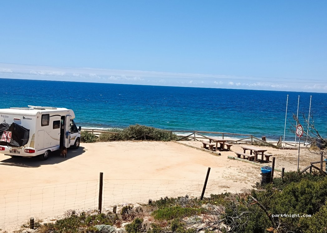 Parking overlooking the sea, beautiful beach, pine forest. Picnic tables with barbecue, wc and water during the day. Closed at 18h. Take a very walkable dirt road for 2 km.
