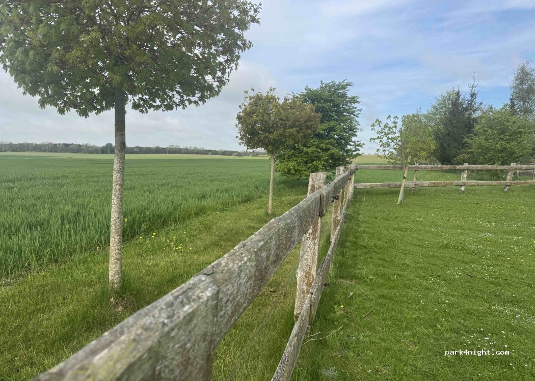 Le site est situé sur une ferme privée, avec un enclos à chevaux entouré d'arbres fruitiers, parfait pour grignoter. Un lac de baignade privé est accessible à 300 mètres en traversant le domaine. Propriétaires très sympathiques qui gardent des chevaux, des poules, des canards et des oies dans leur ferme.