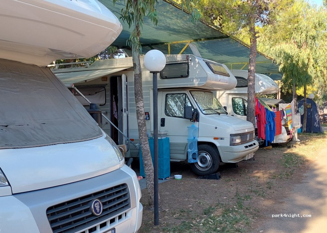 Camping Arizona is a small, simple campsite between Camping Adriatico and Camping Picolo Paradiso. In principle, they are all set up in the same way, the main square above the coastal road and about 8 x 5 rows of parking spaces below the sea. delimited by light to medium tree shading. All places in this region have more of a parking space character. Visual demarcations are nil. One stands next to the other in rank and file. The sanitary facilities are very spartan. The city of Vieste is approx. 2.5 km away. The beach is flat with fine sand. In contrast to the neighboring places, there are no beach umbrellas in a row. Costs at the beginning of July approx. 27 euros per day including electricity and tax. Recommended for a visit to the place.