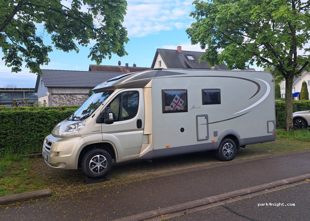 Parkplatz in einer ruhigen Seitenstraße beim Friedhof. Bushaltestelle unmittelbar in der Nähe. Öffentliche Toilette 500m entfernt. (50ct Gebühr)