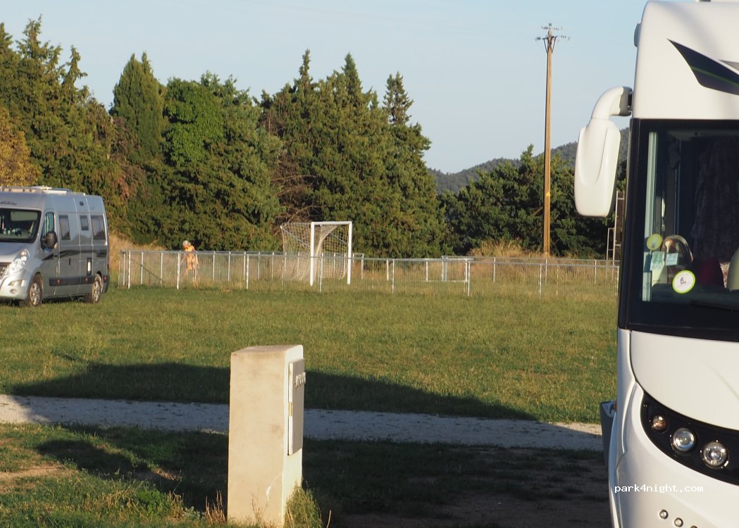 Parking avec services à Darnius. Très calme. A côté du terrain de football.