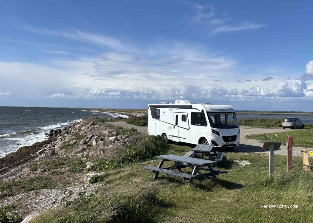 Wunderschöner, ruhiger Platz direkt am Meer. Tolle, offene Sicht aufs Wasser und angrenzende Ufer - zu Fuß ist man ein paar Meter weiter direkt am Zipfel der Insel Langeland. Eine Toilette, Mülleimer und Sitzbänke und -tische vorhanden, ansonsten keinerlei Ver- und Entsorgung. Tagsüber ist reger Betrieb, da Einheimische und Angler ebenso kommen und hier parken, dann aber stellt sich Ruhe ein.