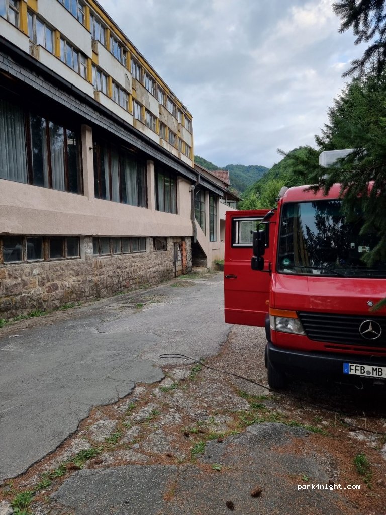 The road to the mineral springs is narrow and offers a few small parking bays. If you need more space, you can stand next to a hotel ruin. A neighbor told me that nobody cares. A small street is in the immediate vicinity (it leads to the healing springs) but there is almost no traffic at night. Stand here because it is not possible to spend the night at the memorial.
