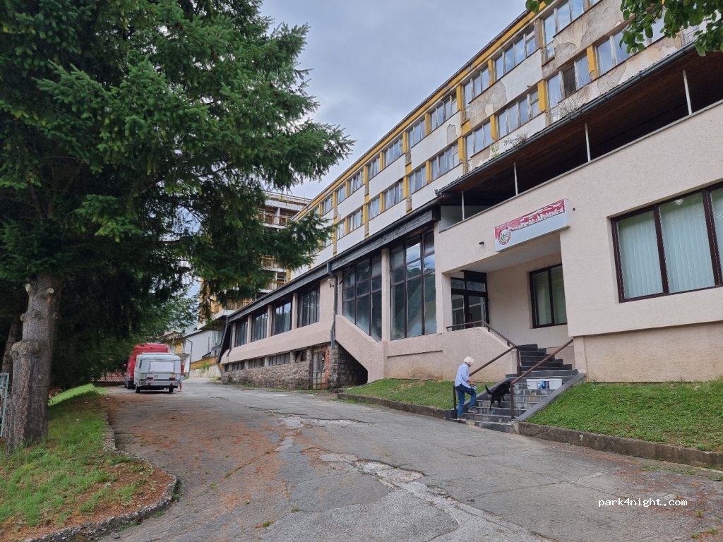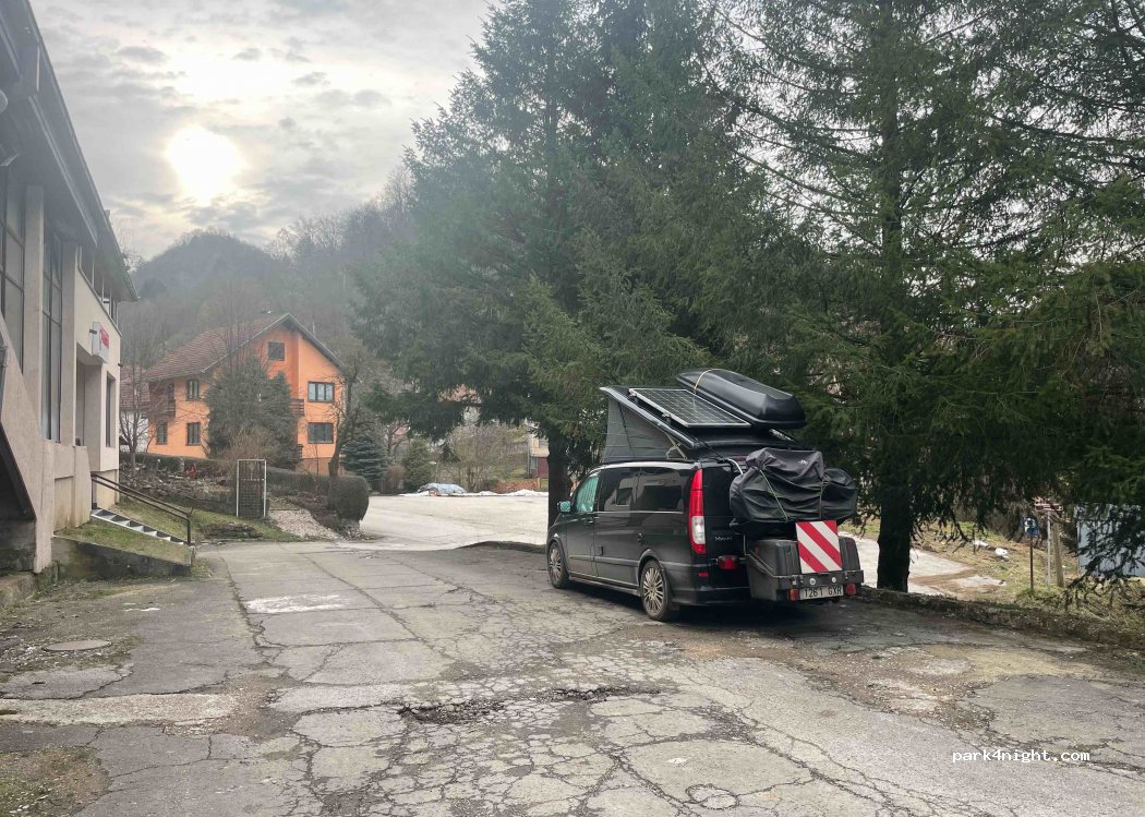 La route vers les sources minérales est étroite et offre quelques petites places de stationnement. Si vous avez besoin de plus d'espace, vous pouvez vous tenir à côté d'une ruine d'hôtel. Un voisin m'a dit que personne ne s'en soucie. Une petite rue se trouve à proximité immédiate (elle mène aux sources curatives) mais il n'y a quasiment pas de circulation la nuit. Restez ici car il n'est pas possible de passer la nuit au mémorial.