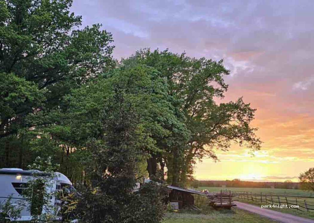Ländlich gelegener Stellplatz, neben Feldern und einem Reitplatz. Die Besitzer sind sehr freundlich und hilfsbereit, sodass man sich willkommen und sicher fühlt! Wir hatten eine entspannte Nacht und können den Platz auf jeden Fall empfehlen (für alle, die keine Services brauchen. Uns wurde Strom angeboten, den wir allerdings nicht brauchten).