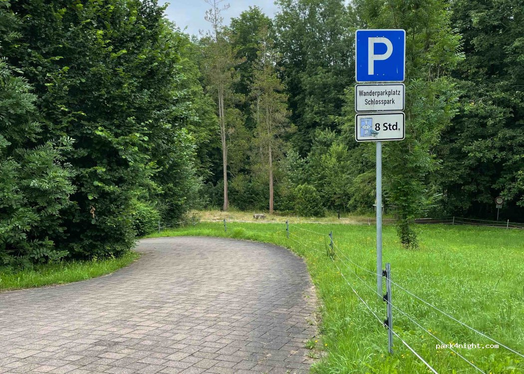 Small parking lot for hikers. Suitable for box vans up to 6 m in length. Parking restriction with ParkUhr 8 hours. Which, however, should be enough for an overnight stay. Very idyllic location in the middle of the green in the castle park in Wechselburg.