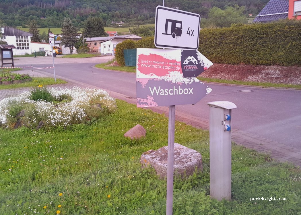 Ausgewiesene Stellplätze für 3 bis 4 Wohnmobile an einer grossen Wiese umringt von Wohnhäusern und Industriecharm. Durch die Parkfläche führt ein Gehweg. Für eine Übernachtung ok. REWE in 100m. Achtung: Die Stromsäule öffnet zum Schildermast, passt bitte auf das Ihr Euch nicht auch an der Spitze des unteren Schildes verletzt!!