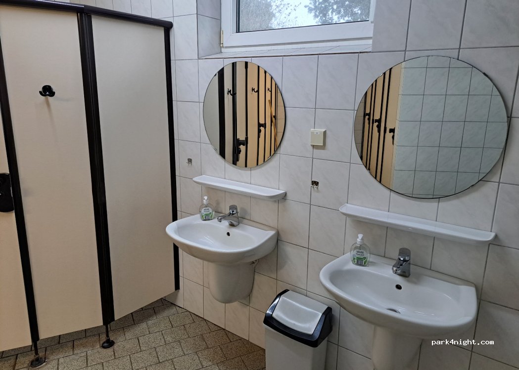 Heel aangenaam plekje. Aanmelden na 18u via de keuken van het resto/hotel. Gratis proper sanitair, zeer ruime warme douches. 2 spoelbakken binnen. Jammer dat je de trein elk uur van de nacht duidelijk hoort. €20/2 volw incl san, excl elek