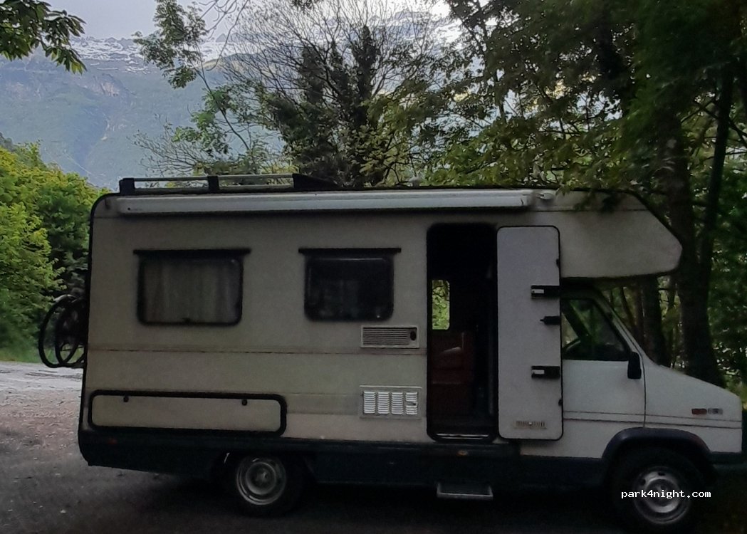 Endroit tranquille en ce mi-mai, cascade au bord du parking, idéal pour un léger rafraîchissement ! Nuit calme, toutefois attention aux moustiques ! Belles promenades aux alentours et charmant village des Alpes Italiennes