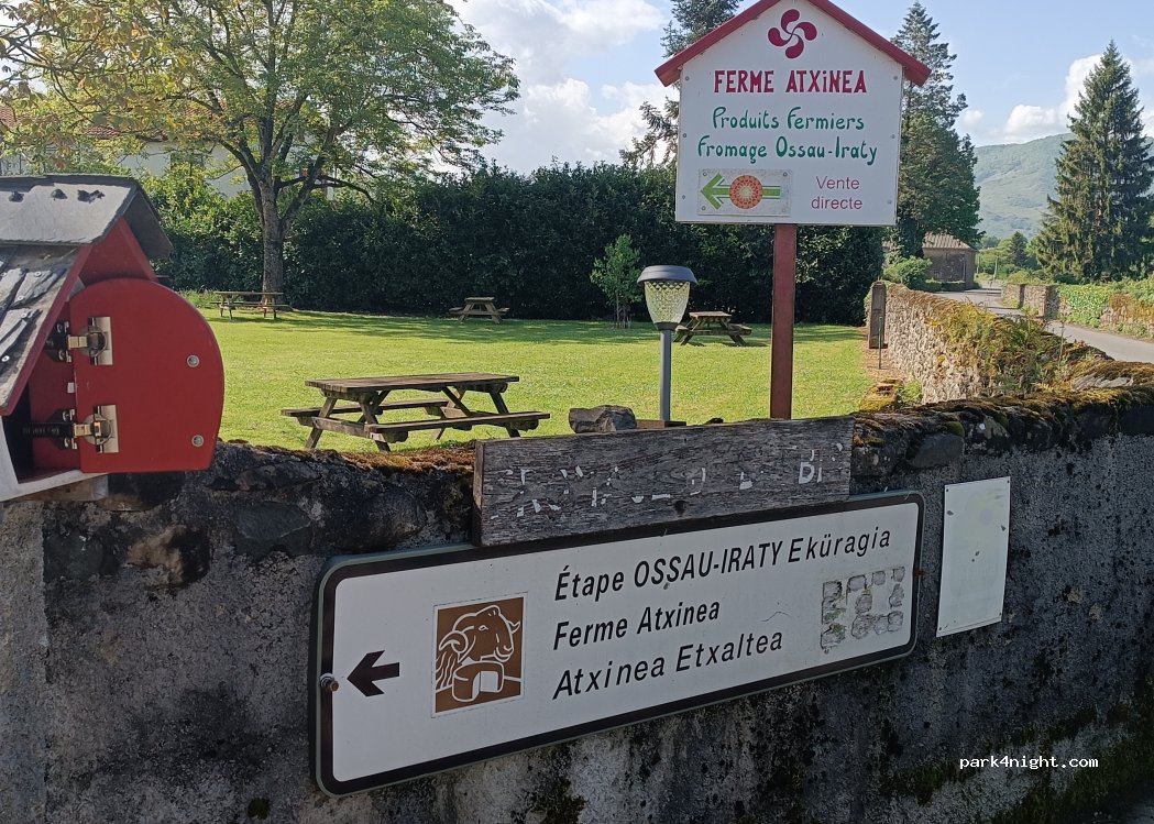 Atxinéa farm in Idaux, super friendly corner. Free drinking water to fill our Cc. 2 wooden picnic tables are available. Small shop with more than reasonable prices. Place to discover