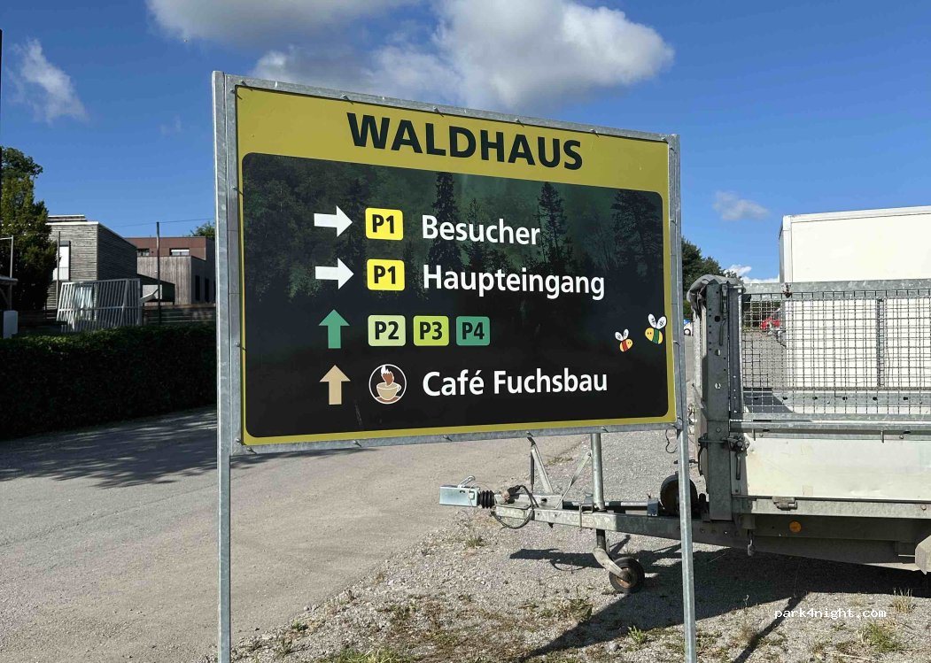Ich verstehe die Kritik mancher Leute nicht! Wenn die Zufahrtsstraße schwer zu finden ist, sagt das nichts über die Qualität des Geländes aus … sondern nur über die Qualität unserer Beschreibungen! Wegbeschreibung: Café Fuchsbau/Waldhaus: Nach den Kleingärten Richtung Café. Folgen Sie der Beschilderung zum Besucherparkplatz 1/Haupteingang. Fahren Sie ganz nach oben (ja, es ist etwas steil). Der Bereich ist speziell für Camper abgesperrt, aber deutlich mit „Campingfrei“ gekennzeichnet. Lösen Sie die Kette, fahren Sie hinein und genießen Sie die herrliche Aussicht, die Ruhe und die Wanderwege. Bezahlen Sie im Café!