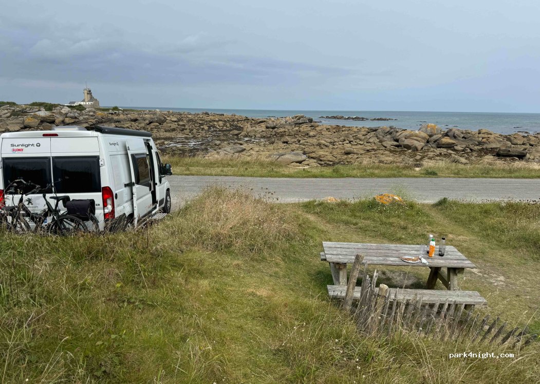 Parking for 4, 5 places, after the sailing school, facing the sea, no service on site but see at the campsite 50 meters below. There is a parking prohibition sign at night.