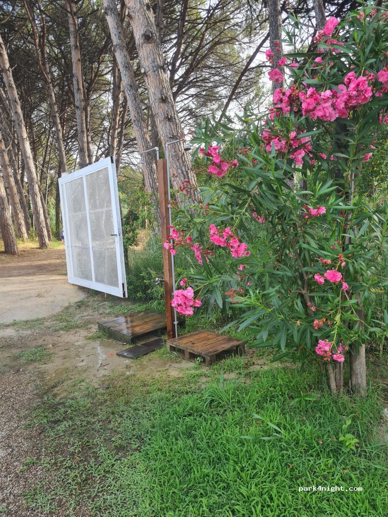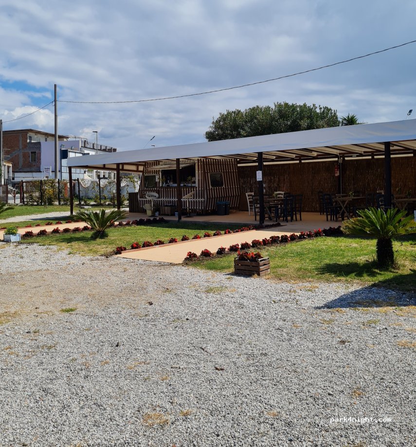 Parcheggio nuovo tenuto benissimo ,pulitissimo ,servizi doccia bagni ,carico scarico acqua + corrente ,completamente recintato ,accesso al mare passando per la pineta a 100 metri mare stupendo ,bar vicino ,negozio frutta e verdura a 50 metri gestito dai genitori del titolare parcheggio frutta freschissima ,lo consiglio a tutti ,i proprietari hanno un ospitalità fantastica ,