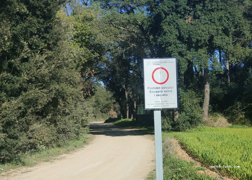 No s'hi pot accedir amb vehicle. A tres minuts abans d'arribar al lloc, a la pista hi ha una senyal indicant: Prohibit circulació, excepte veïnat i serveis. Adjunto foto.