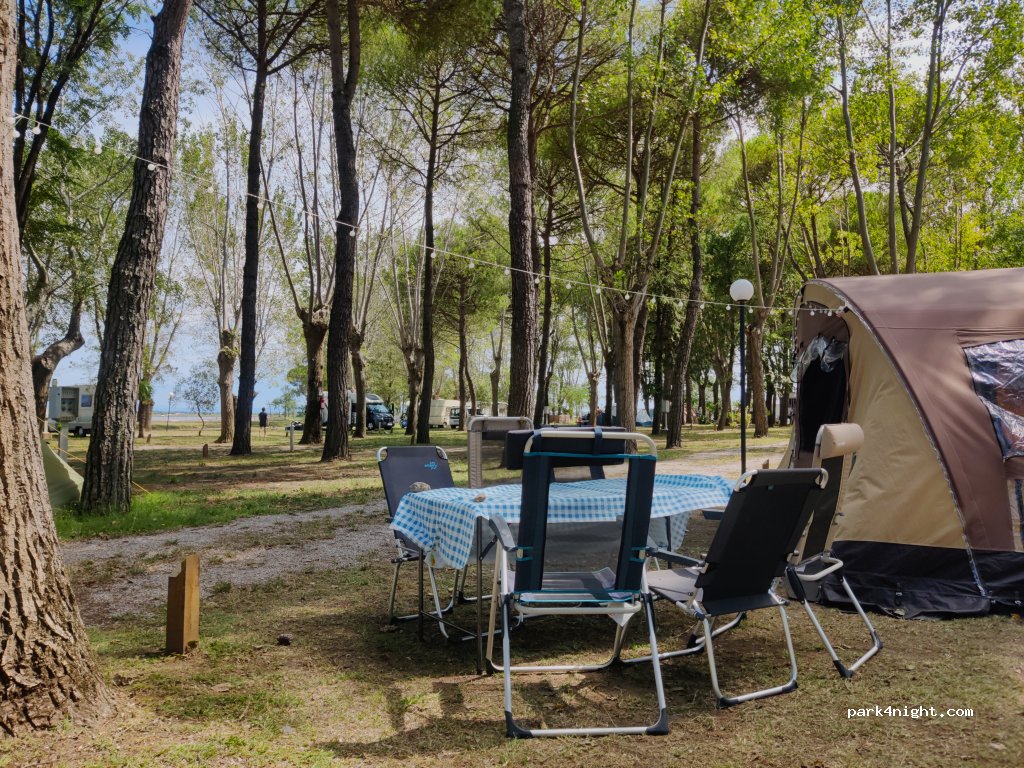 Camping che copre tutta l’isola, vi sono delle roulotte fisse, ma buonissima disponibilità di piazzole sia vicino mare, che nella parte interna. Animali ammessi, possibilità di noleggio bici, bar aperto dalla mattina alla sera, market interno, Wi-Fi zona della reception e del bar. Unico neo zanzare presenti in quantità. P.S. Happy hour aperol-spritz