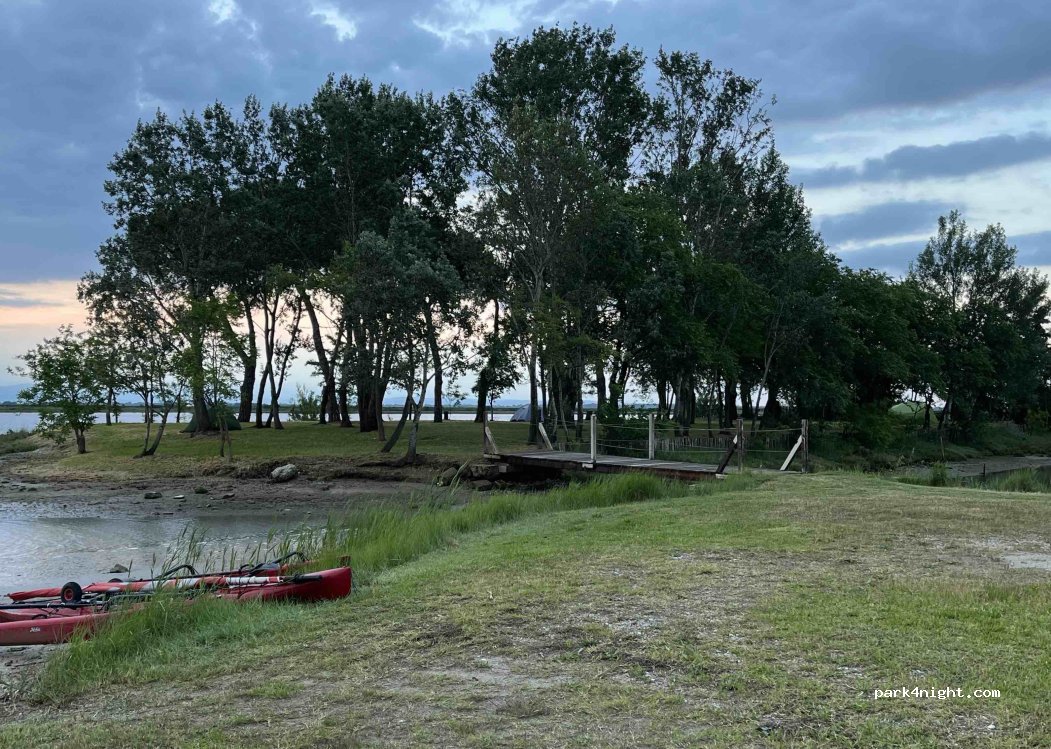 Camping Isola del Paradiso, natural campsite on Isola Volpera. Under new, young management since March 2021. Marked places under trees, small sandy beach, swimming pool, bar and supermarket. Electricity and V / E available. Very friendly and helpful staff. Grado can be reached quickly by bike.