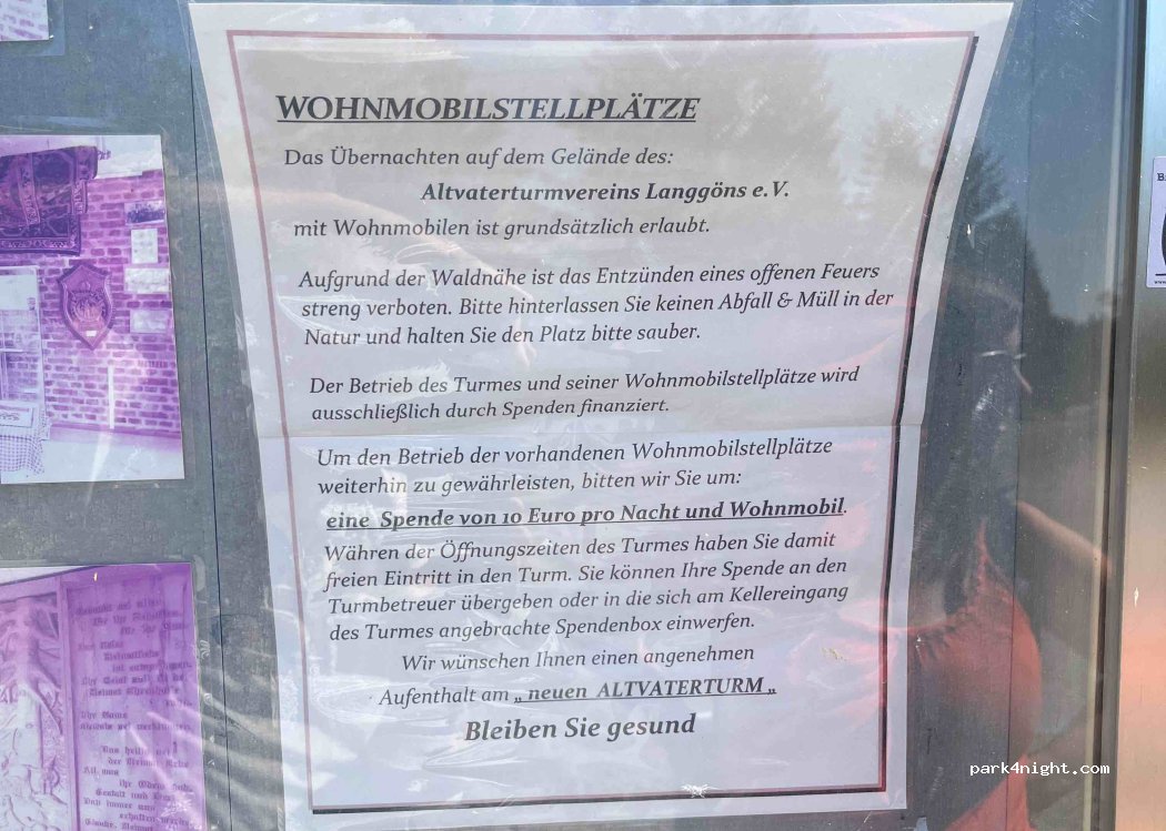 ein wunderschöner Platz mitten im Wald, die Straße ist ein ganz klein wenig zu hören, aber Nachts ist es mucksmäuschen still. Wir haben 10€ an den Verein des Turmes gespendet und durften dafür auf den Turm und ganz offiziell direkt oben am Turm über Nacht stehen. Kein Service, bitte nehmt euren Müll wieder mit. 3G/4G Empfang