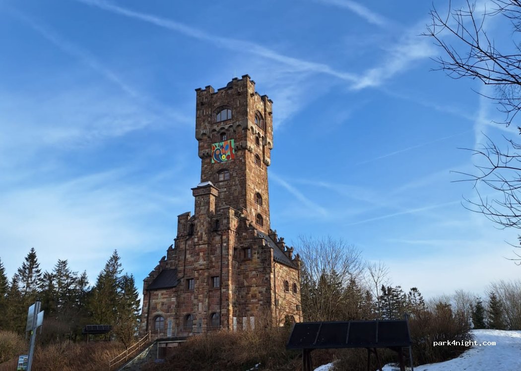 Was für eine schöne Überraschung! Wir sind aufgrund der Empfehlung hier hingefahren und hatten eine schöne ruhige Nacht. Im Turm ist ein kleines Museum und mit der Spende von 10 Euro für die Übernachtung, hat man freien Eintritt. Im Turm gibt es außerdem eine Gaststätte und eine Kapelle. Bis zum Schieferpark wandert man ca 45min durch den Wald. Klare Empfehlung für alle, die Ruhe suchen.