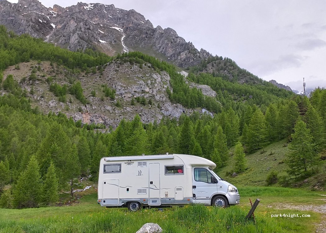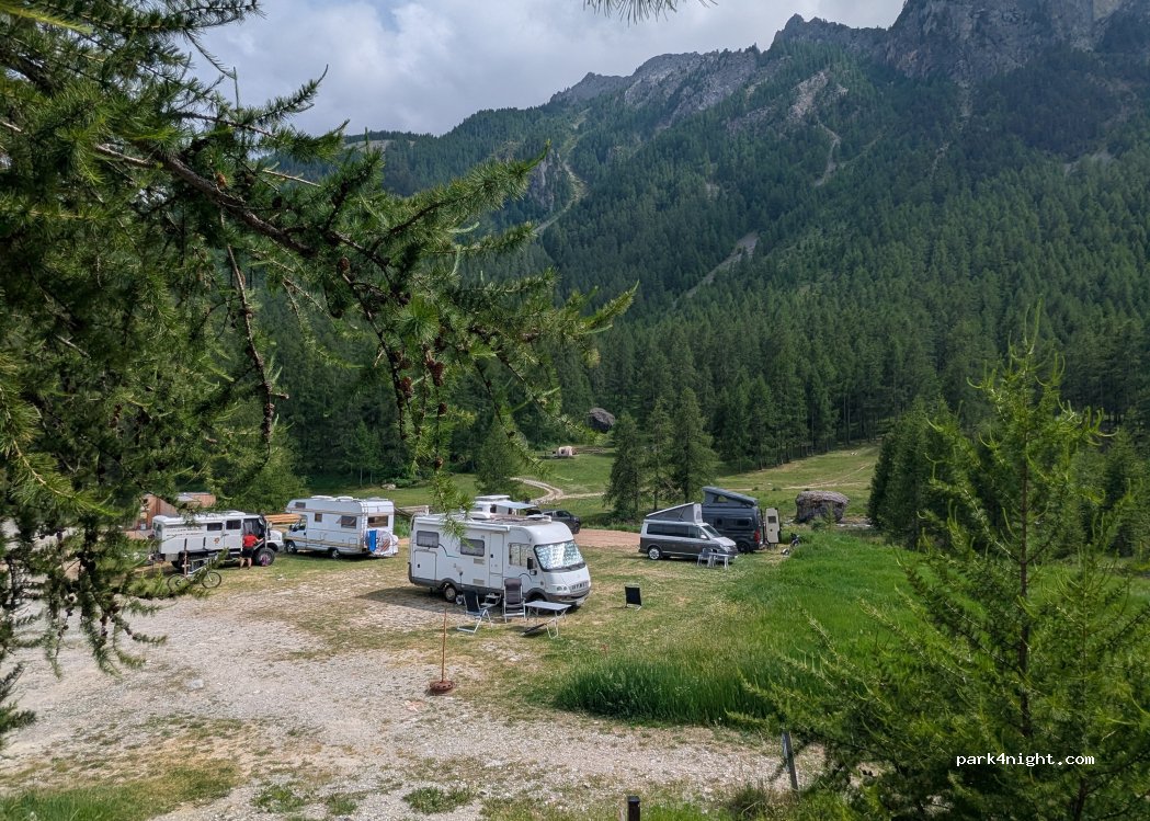 Bel posto alle sorgenti del Maira per circa una ventina di camper. Se si soggiorna tutto il giorno costa 10€, ma ne vale la pena. Gratuito se si sale dopo le 17 e si va via al mattino, sul presto. Ci sono i servizi igienici e lavandini a poche decine di metri dal parcheggio, ma sono al buio, portare frontale. In compenso sono puliti ogni giorno. Nessun altro servizio.