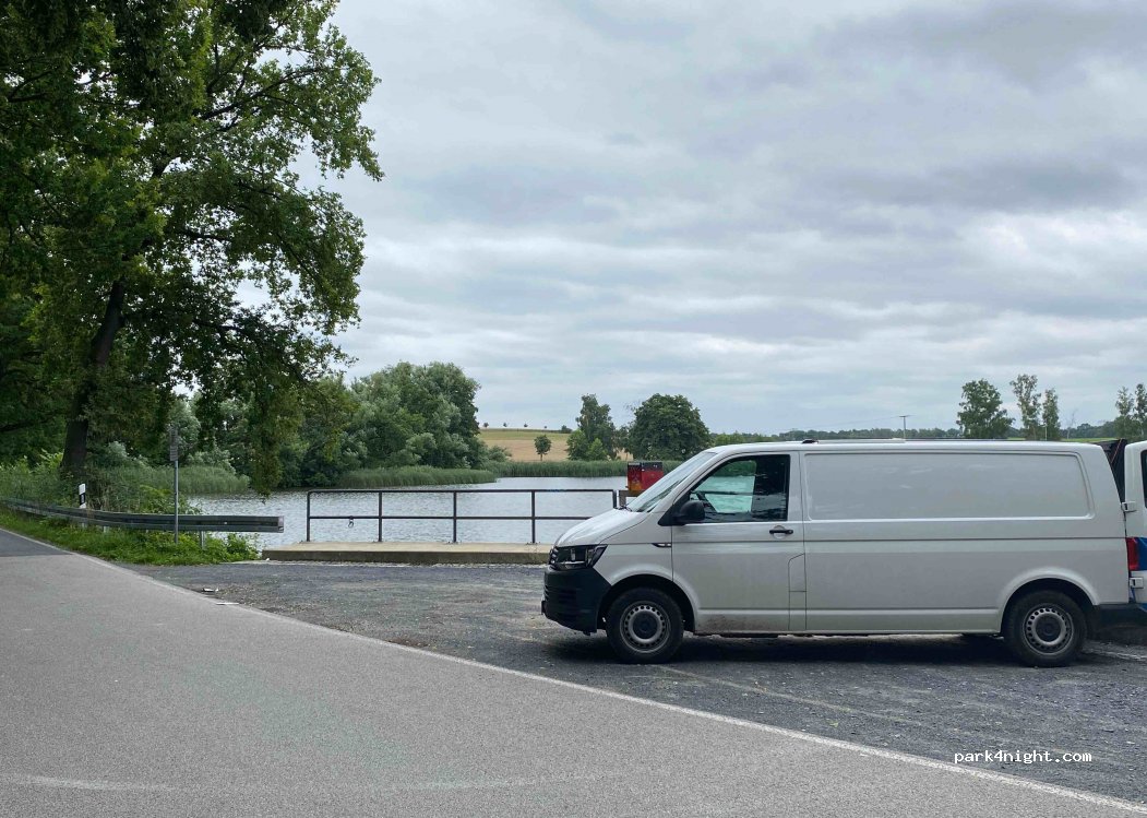 Kleiner Parkplatz direkt am See. Es gibt auch eine kleine Stelle an der man Schwimmen gehen kann (100m im Uhrzeigersinn am See lang) Nachts fahren wenig Autos vorbei. Einziger Nachteil ab und an stinkt es aus der kleinen Schleuse.