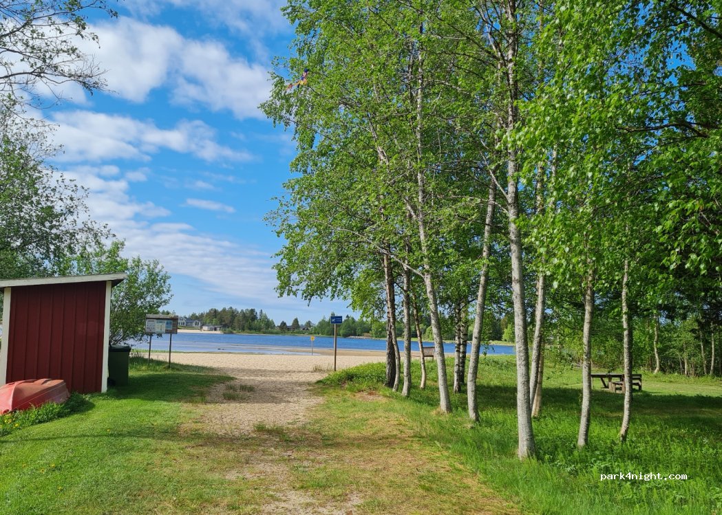 Petit camping d'habitués prés d'une plage, avec quelques places sur pelouse pour camping cars et tentes . 400 Sek avec électricité. Sanitaires propres et bien tenus. 2 douches chaudes. 2 WC. Machine à laver et sèche linge. Accueil sympathique. Cabane à glaces. Nous avons passé 1 nuit calme face à la plage.