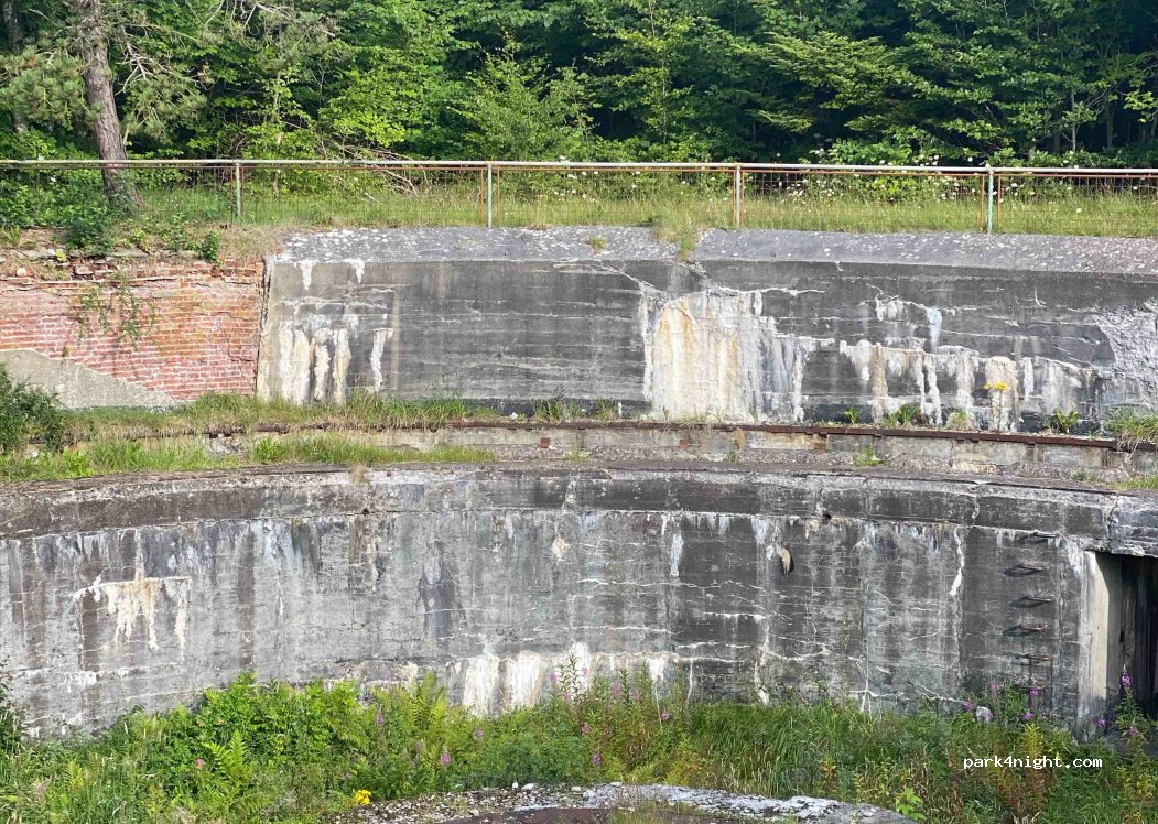Parkplatz an einen der 4 Riesigen Geschützbunker aus dem 2. Weltkrieg.