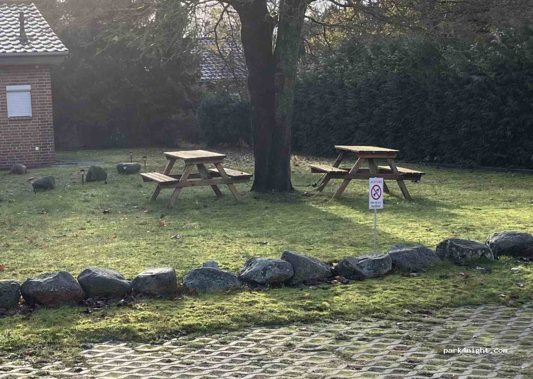 Aparcamiento diseñado para camiones, ideal también para autocaravanas. El bar "Rollys" ofrece comida casera de calidad y duchas para quienes las necesiten. Hay cuatro plazas de aparcamiento para autocaravanas disponibles en aceras con césped, con agua y electricidad. No hay desagüe ni baños químicos. No hay baños ni duchas por la noche. 8 € por agua y electricidad.