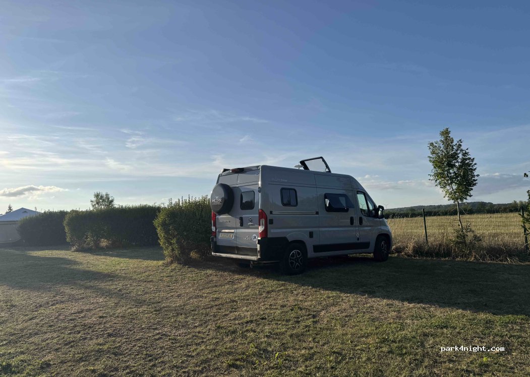 Perfekter Platz auf der Durchreise.17,50€ inkl. Strom mit großem Camper. Sehr leckeres Essen im Restaurant zu moderaten Preisen.Mit dem Fahrrad kann man die Gegend wunderbar erkunden.leider hatten wir uns festgefahren, da es die ganze Nacht geregnet hatte, war aber kein Problem, wir wurden mit dem Jeep rausgezogen. Kostenlos!! Der gute Mann wollte nichts dafür habe!! nun Richtung Champagne.