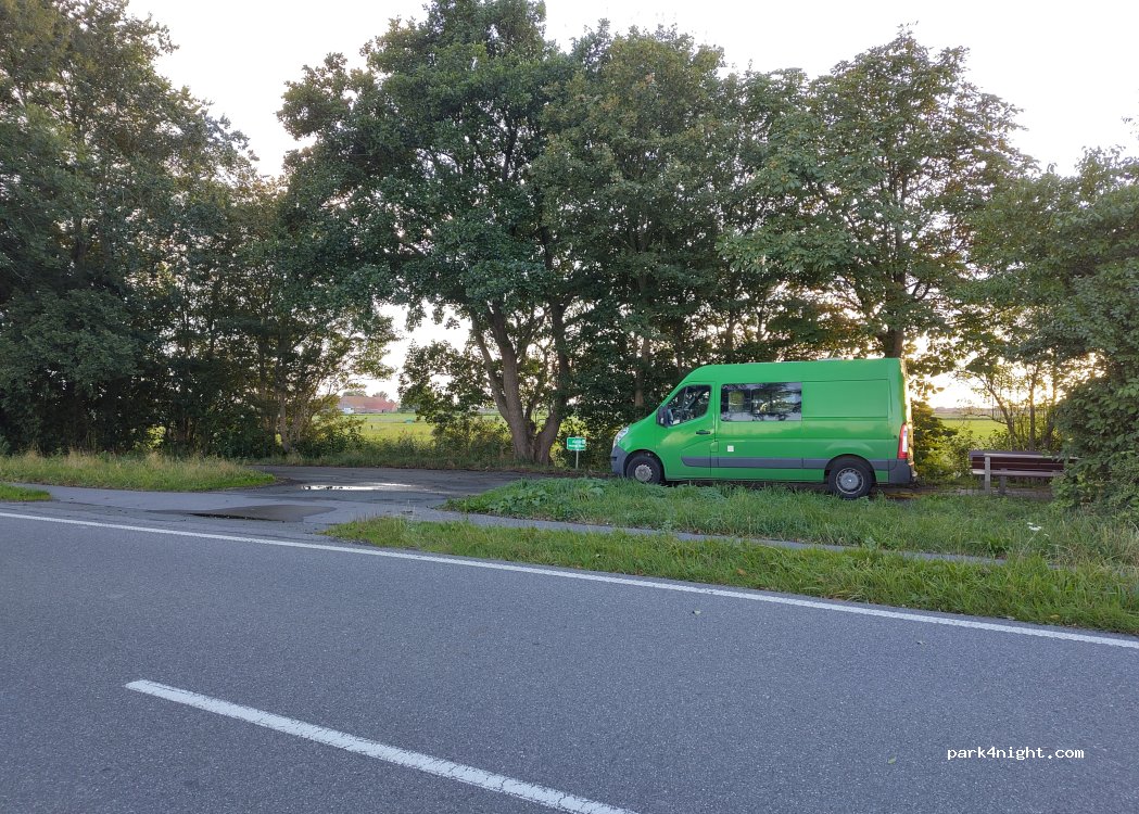 Small parking lot separated from the street by bushes, neighbors are cows. Little traffic on the road at night, difficult to see. Ideal for a small motorhome. No rubbish bin - unfortunately quite dirty here.