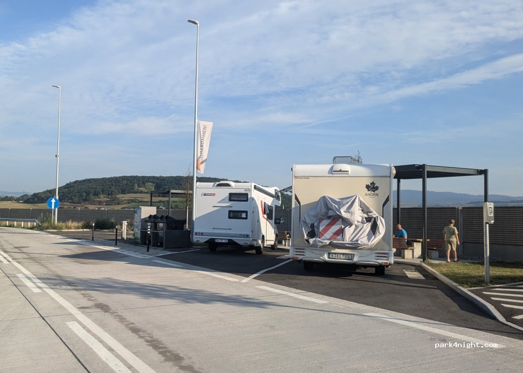 Für das was es ist - eine Raststätte an der Autobahn - hervorragend. Hell, modern, sauber, sicher - breite und lange Plätze nur für Camper mit Picknick Tischen (teils auch überdacht). Dazu Müllentsorgung und Ver- und Entsorgung.