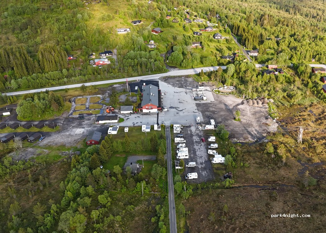 Parfait pour une nuit de passage à un prix raisonnable 235 nok avec électricité et douches incluses. Sanitaires neufs propres, spacieux avec musiques d ambiance. Effectivement il n y a pas de vu mais tout ce qu il faut pour se reposer. Le propriétaire est très accueillant et sympathique. Nous n avons pas pu goûter le restaurant car arrivé trop tard. Dommage! Fait station essence + recharge