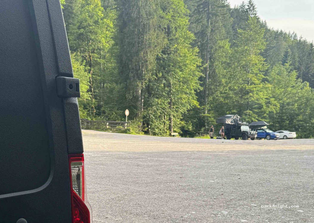 Toller Platz. Danke an die Gemeinde Kreuth, dass die Wanderparkplätze für 10 Euro zur Übernachtung zur Verfügung gestellt werden.Parkplatz ist geschottert und eben. Ruhig gelegen. Öffentliche Toilette steht auch zur Verfügung! Das Rauschen des Wildbaches ist sehr beruhigend!