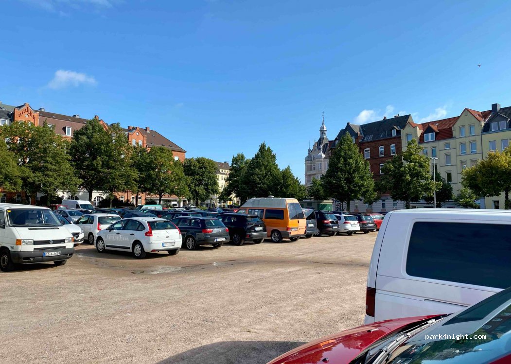Es handelt sich hierbei um einen der wenigen kostenlosen Parkplätze. Es ist die offizielle Veranstaltungsfläche ( Jahrmarkt, Circus,...)der Landeshauptstadt Kiel und nur in der Veranstaltungsfreien Zeit freigegeben.