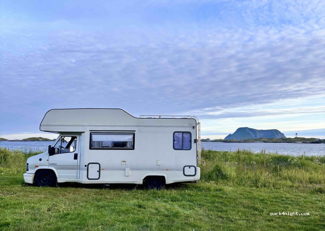 Prachtig uitzicht, met de verrekijker orka’s spotten vanuit je camper en zeehondjes zitten in het baaitje. Grasveld met iets van 8 plekken. We bleven 3 nachten en betaalden 235NOK incl 16A. Goede douche, geen muntjes nodig. Rib-boot Tour (info hangt bij camping) om papegaaiduikers te zien. Alles is vanaf de camping gemakkelijk te bereiken per fiets of ga wandelen. Gemoedelijk zeer klein eilandje.