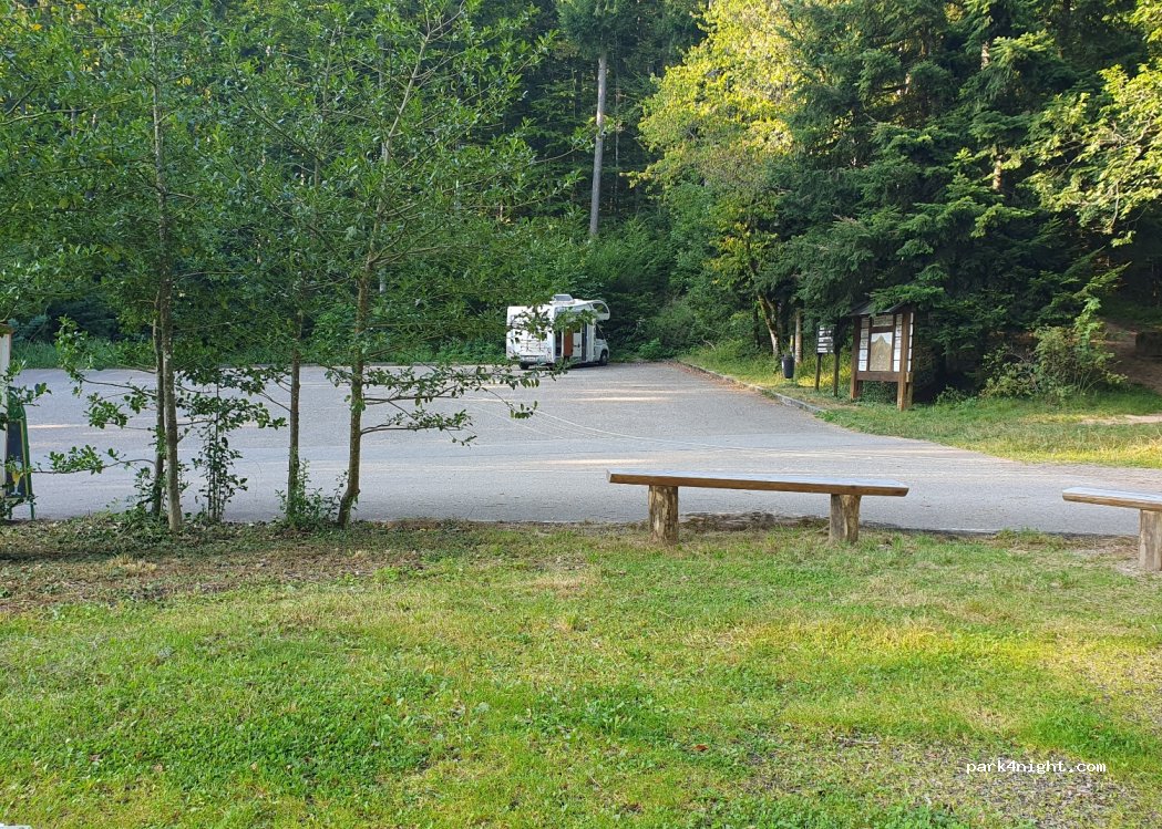 Bel espace barbecue avec tables et bancs. Source d'eau potable et abri. Il y a une interdiction expresse de circuler sur l'aire de barbecue. L'utilisation après 20 heures nécessite une notification préalable.