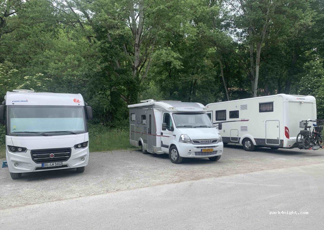 schöner kostenloser Platz Stadtnah am Radweg nur wird von ausländischen Drücker als Treffpunkt besucht die sich außerhalb ihren Fahrzeugen die ganze Nacht aufhalten. Dadurch ist es sehr laut. Man fühlt sich nicht wohl hier. Die Büsche werden als Toiletten benutzen.