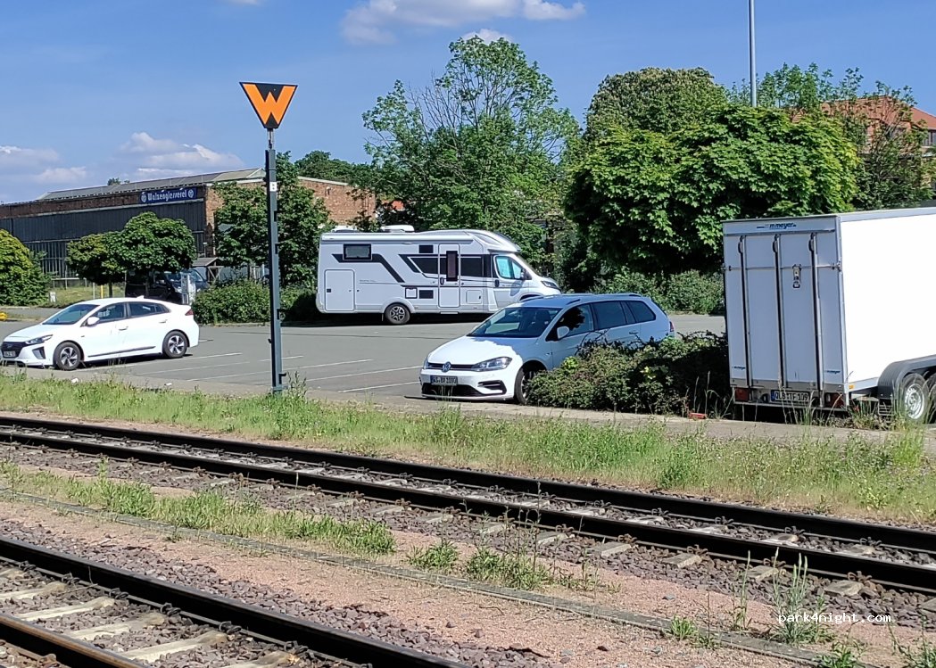 Großer gebührenpflichtiger Parkplatz neben dem Bahnhof für große Wohnmobile (9,50 m)