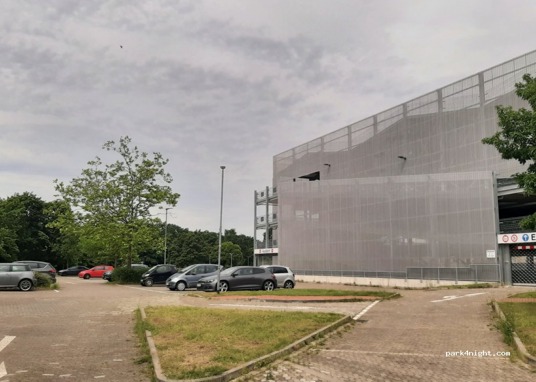 Parking sud de l'Université Heinrich Heine de Düsseldorf. Devant le parking actuel, entouré d'arbres, il y a de beaux endroits plats pour se tenir debout. Il n'y a que des barrières pour le parking adjacent. Le jardin botanique et le Brückerbach ainsi que la bibliothèque nationale sont accessibles à pied. Le Rhin n'est pas loin non plus et vous pouvez faire un long tour à vélo jusqu'à la vieille ville.