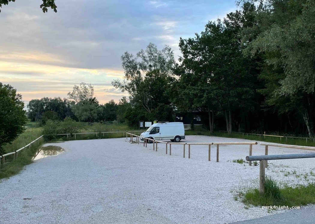 Schöner Platz für kleinere Fahrzeuge mit sehr sauberen Toiletten und erfrischender Bademöglichkeit in der Alz. Wir (6m mit Zeltdach) kamen samstags in den Ferien um 19 Uhr an und es standen noch 2 PKW und ein Van da. Haben mit den Anwohnern gesprochen: übernachten okay. Morgens kann man entweder vor 8 Uhr fahren oder 3€ fürs Parken zahlen. Vielen Dank für diese tolle Option!