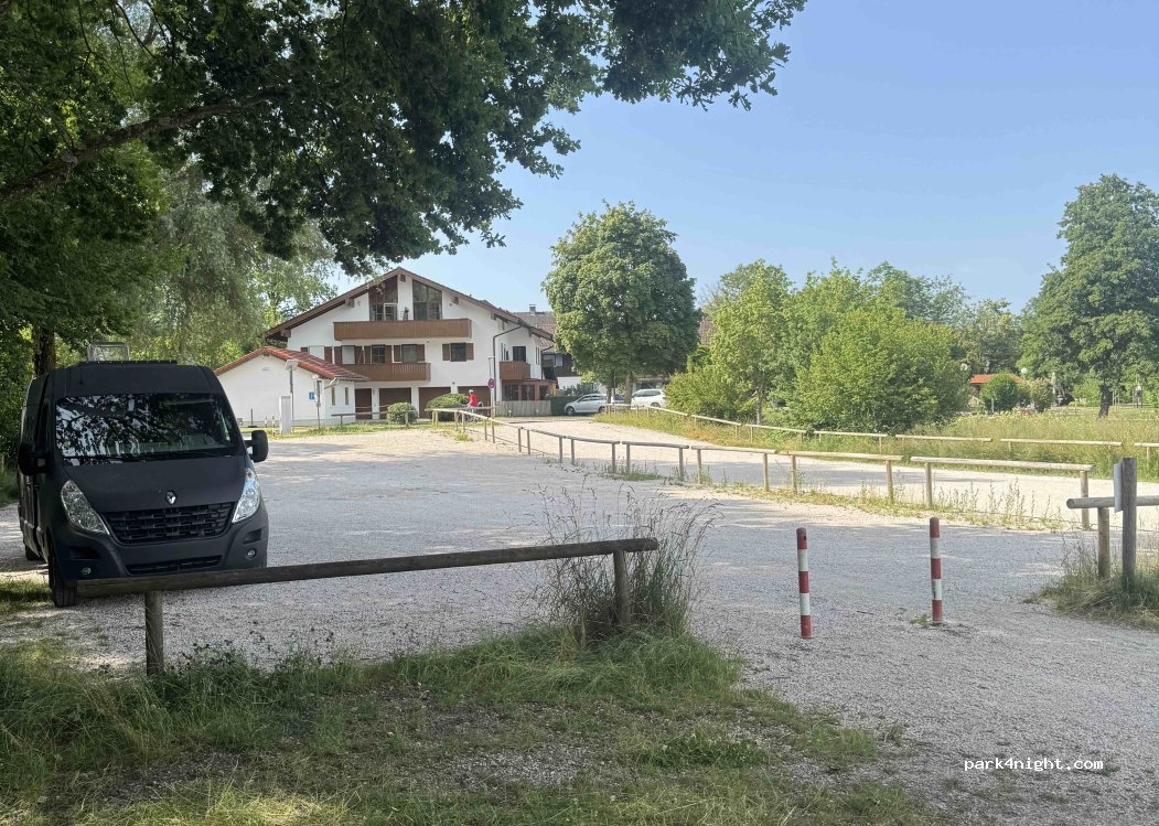 Sind hier in der Früh angekommen, waren den ganzen Tag auf dem Chiemsee unterwegs und haben anschließend eine super ruhige Nacht hier verbracht. Absolut toller Platz, Fußweg zum See 2-3 Minuten. Als wir in der Früh neben unserem Van gefrühstückt haben kamen zwei Männer und haben an dem Häuschen nebenan etwas repariert. Haben freundlich gegrüßt und es war kein Problem, dass wir dort waren.