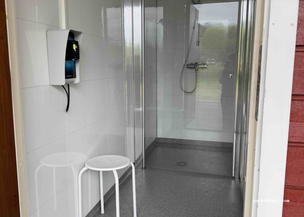 j ai utilisé la douche sans dormir au camping. il suffit de vous garer derrière la réception. vous allez directement dans les douches et vous avez un boîtier électronique où vous payer directement en carte bancaire 250 kr pour 8 minutes ca dépanne bien !