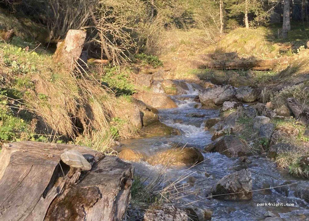 Nous avons passé une nuit formidable au calme sur ce parking proche d'un ruisseau qui chante ses douces mélodies. Il est conseillé d'arriver tôt car ce lieu idyllique est un petit havre de tranquillité en plein nature. La route automobile est fréquentée d'une façon sporadique pendant la journée mais la nuit aucun trafic, la quiétude parfaite règne pour une nuit bienfaisante.