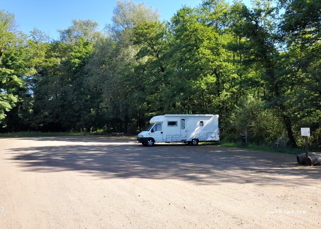 Grand parking d'un parc animalier, gratuit en journée, nuitée avec électricité pour un mobil-home jusqu'à 4 personnes. De 9h00 à 18h00, les toilettes du parc animalier peuvent être utilisées, ainsi que les poubelles. L'endroit est super calme et en pleine nature. Vous pouvez rester ici jusqu'à trois nuits.