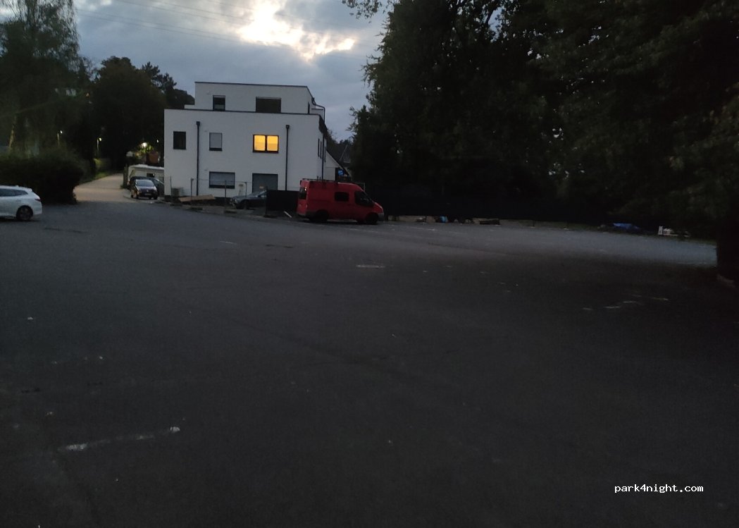 Ruhiger Parkplatz in der Nähe von dem Freibad Milchborntal und dem Haeger Stadion.
